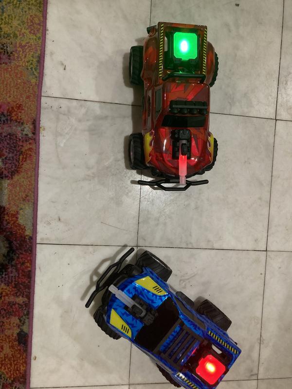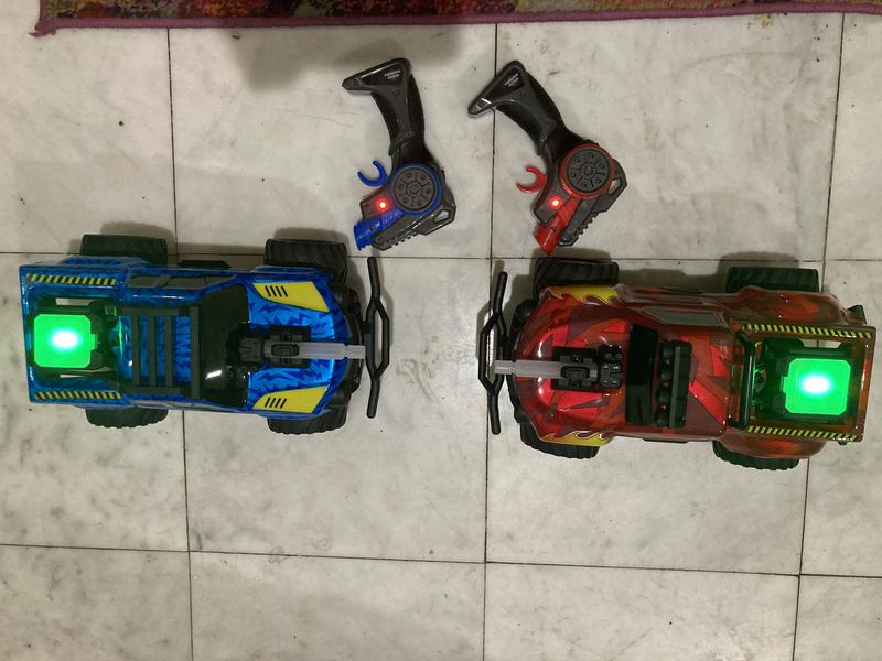 My kids really enjoyed these battle machine remote control vehicles. I love that it comes in a two pack so that both of my boys can play together. They contain an attached USB wire for charging and charged up super fast and lasted about 45 minutes each. It took some practice to learn how to control the vehicle and shoot at the same time, but once we figured it out they had a blast! They are pretty durable and the boys have fun chasing eachothers truck down. Worked well outside and indoors as well. They light up too which makes it super fun!