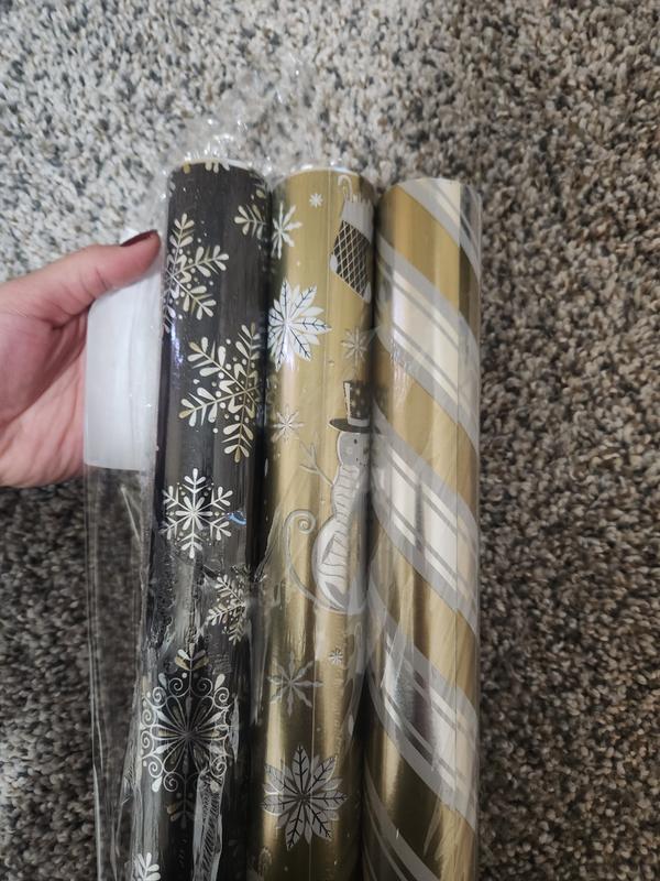 As other reviewers stated, the wrapping paper you get is not the pretty, colorful ones you see. They are gold, silver, & black. I wanted bright colors, as I have lots of children’s gifts.