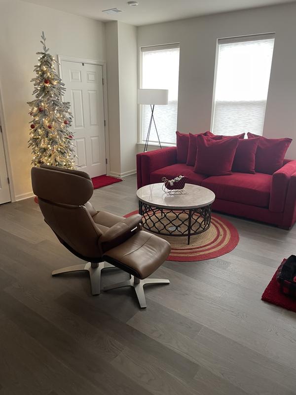 I love this chair. It looks good. It’s very comfortable. The price was right. It fits perfectly in the room. The delivery went smoothly as well. They brought it to the second floor and assembled it in the room. It is a good quality chair and ottoman. I have priced other ones and they are significantly more money and not significantly better quality.
