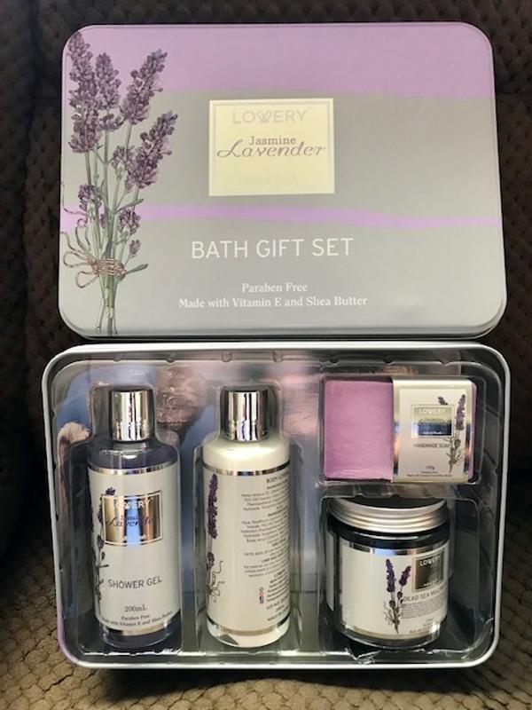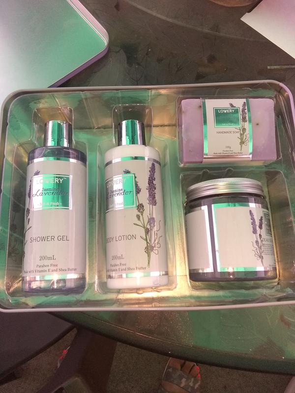 Super impressed by this set. Came packaged very well in the tin container which can be re used. The long lasting smell is great. Lavender is one of my favorite fragrances. I plan on getting another one for my sister.