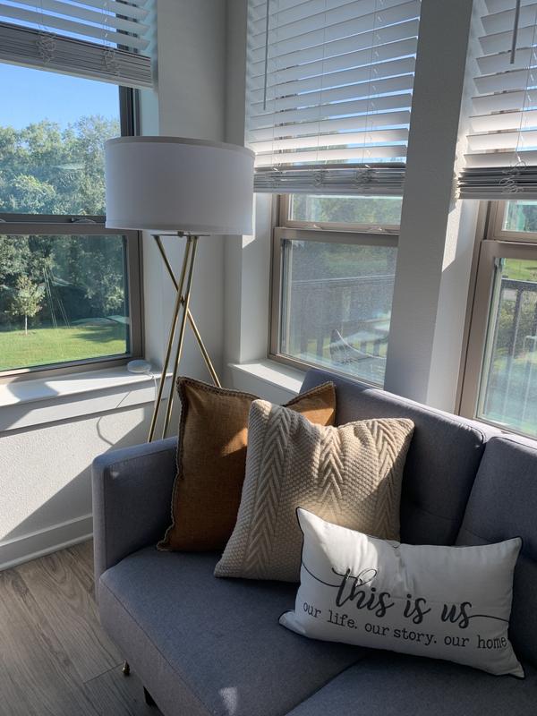 I love this for my living room. Just as expected with a minor suggestion. It’s modern looking. The gold is a perfect brushed color and not yellow gold like a lot of “brushed gold” advertised. Super easy to put together. I wished the white shade had a protective wrap when putting it together as it got dirty from the get go and now I have a visible mark on it I can’t get clean. The only reason for 4 stars is I wish there were a couple optional choices for lamp shade color. This is a very bright cool white and contrasts a bit too stark for my warm white walls, sofa and floors. A linen or flax color would be nice. Otherwise, love it. I’ll have to shop for a different shade.