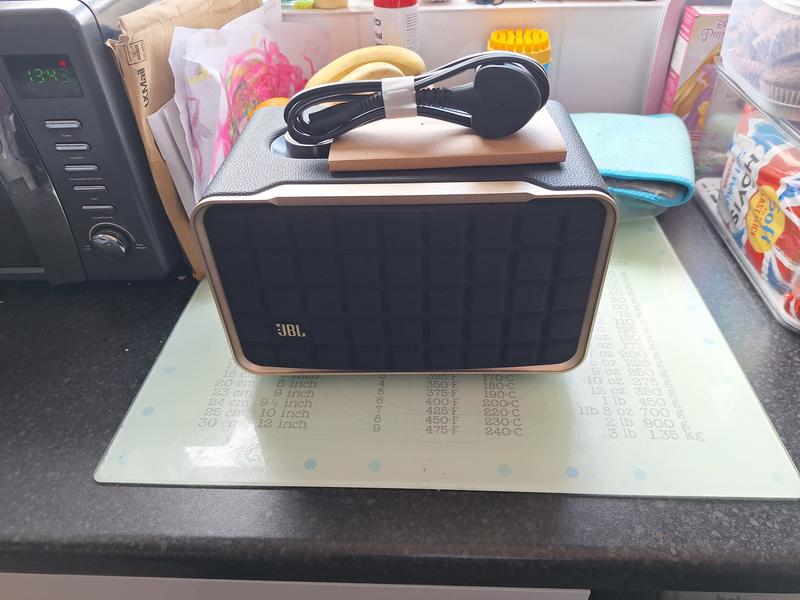 We have this for a while now and we loved. The sound is amazing, speaker seats on 8 small rubbers 2 each corner, they are helping to cancel vibration so compare to other speaker you don’t need to look space with nothing close to it if you want to use it with high volume bass. Retro design is probably not for everyone but for our place is fantastic we like antics and with this you have mix of technology fitted in to retro box. Of course is smart speaker so you can use Alexa, google and all you actually needs from speaker. Great job JBL