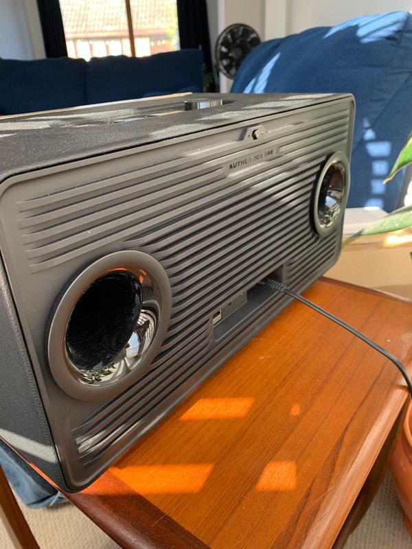 I have this speaker for quite some time now. It has wonderful quality sound. Treble and bass easy to tune and use. The knobs are turnable in very soft way. Whole speaker is sturdy and fits well in interior. I really liked that authentic vintage look. Leather all over the speaker makes it look expensive and well made. One thing disappointing is that it is not wireless and not chargeable. I just expected it too be wireless without checking, butnit has to be connected to the power at all times. Other than that is good quality item with perfect, loud and clear sound quality.