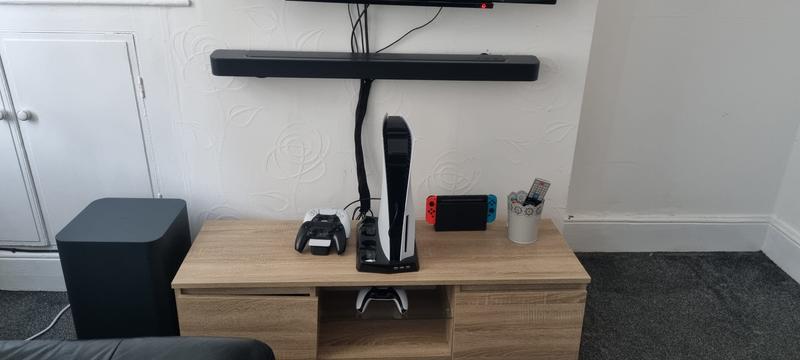 Bought to replace an underpowered old soundbar. My room has high ceilings and this fills the space better than I had hoped. Bass is thunderous. Dolby Atmos effects are pretty weak, although my high ceilings could be part of the problem there. If you want surround sound this ain't it, but it does what it does pretty well. Soundbar occasionally struggles with sound input changes but overall I am happy with it.