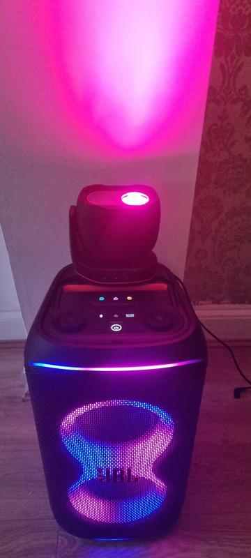 I’ve been trying out the partylight for a bit now. The lighting is vivid and colorful, casting dynamic patterns that quickly make the space feel more energetic. When paired with a PartyBox speaker, the sync feature creates a great atmosphere, and even on its own the built-in mic lets the lights follow the music pretty well. The build feels solid and it’s lightweight, but since it doesn’t have a built-in battery you’ll need to keep it plugged in, which limits where you can place it. It’s also not splash-proof, so best to keep it indoors. On the downside: the effects lose some impact in bright rooms, and the mic sync isn’t always perfectly on beat. Still, in darker settings it really adds to the party vibe and works best when paired with other JBL lighting gear.