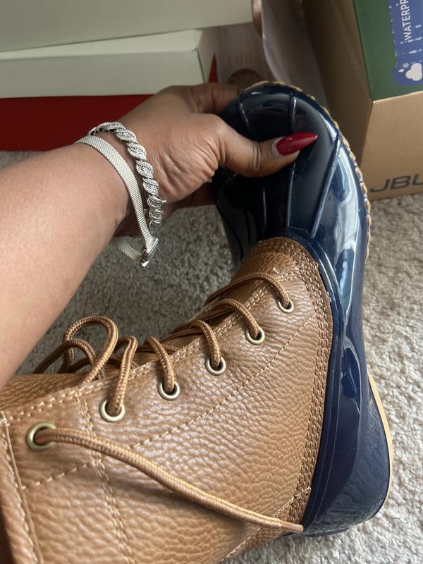 In CNY part of fall every year I needed something for wet weather to keep in the house there. The price was right. I wear 7.5 in sneakers so ordered 7.5. Fit just fine with thin socks. Normally would need half inch larger to allow for my orthotics but comfortable enough for short term wear. Nice looking with dark jeans that expose the navy.