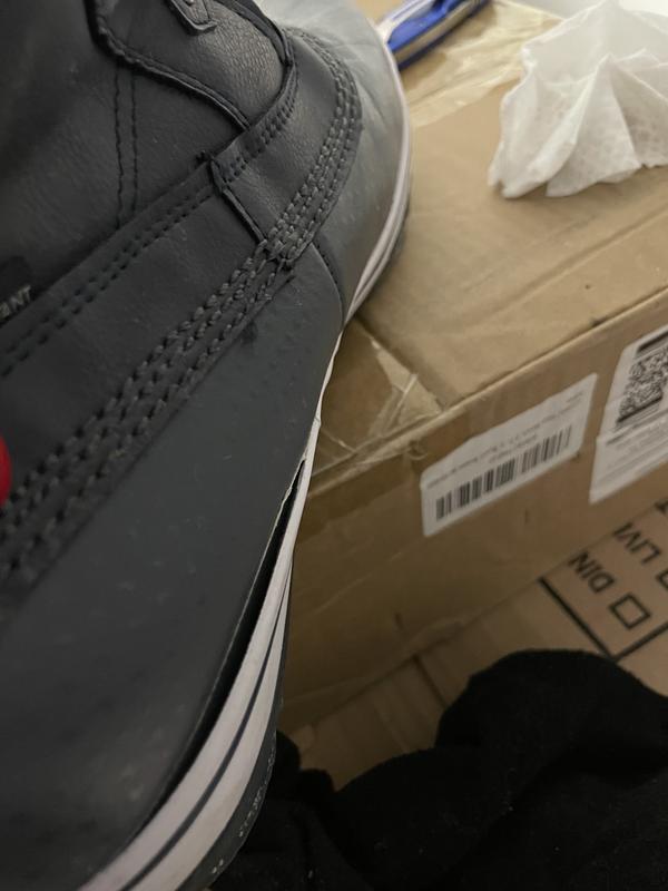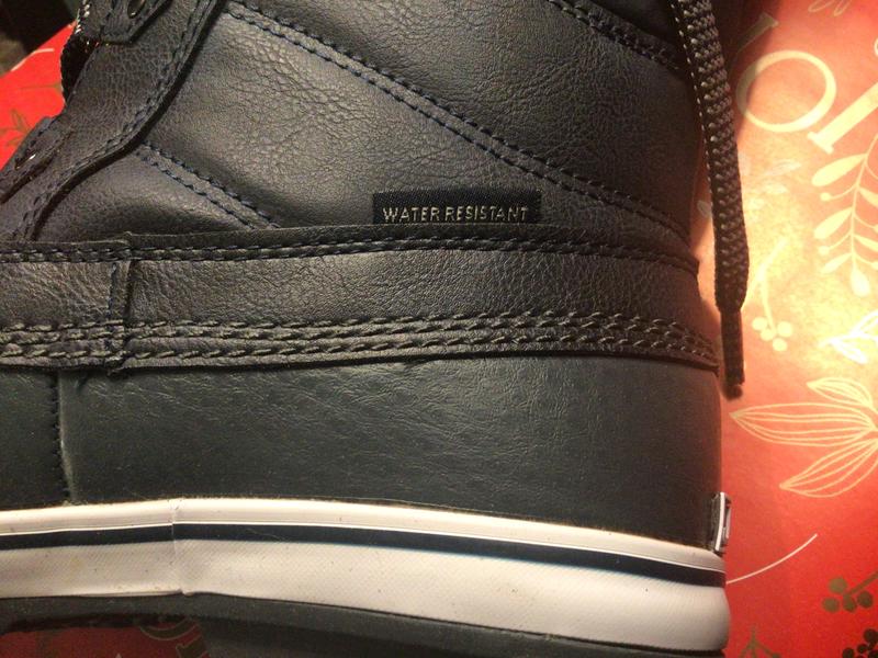 The boots are plasticly, meaning when you step down they fold up by the ankle and around the shoestrings. A product I wouldnt expect to be sold at Macy's. Are they becoming the next Dillard's 2nd hand thrift store - with Department store prices?