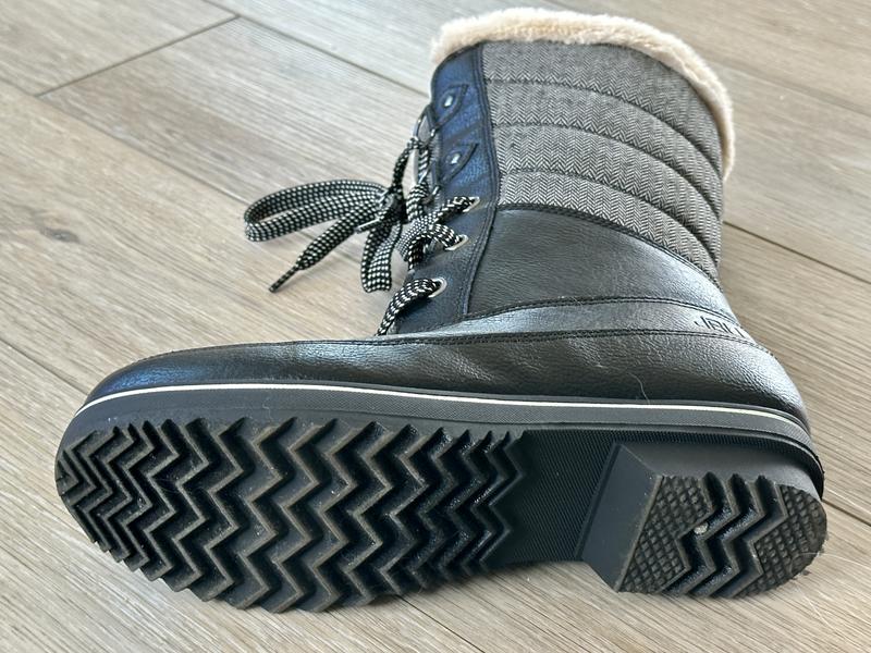 These boots are exactly what I was hoping for! They’re stylish, waterproof, warm, and super easy to get on and off. I sized up one size to make sure I’d be able to fit my thick, winter socks and fleece-lined jeans inside without feeling uncomfortable. With the ties and extra wiggle room in the shaft and foot area, I possibly would’ve been okay with my regular size, but I didn’t want to take any chances. They’re perfect. Love them!!