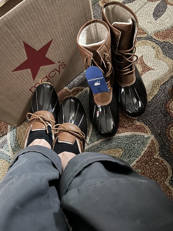 Meet Woodbury, a feminine slip-on duck shoe with a rubber and faux leather upper. From stomping in puddles to work to slushing around on the weekends, the Woodbury is a great style for any climate with its non-slip outsoles.