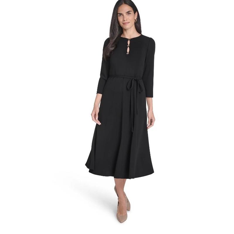 Petite Fit and Flare 3/4-Sleeve Midi Dress