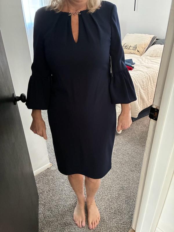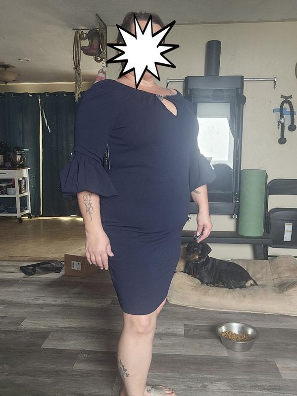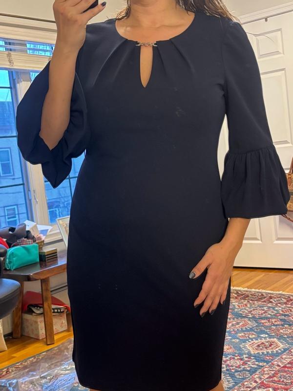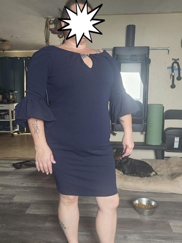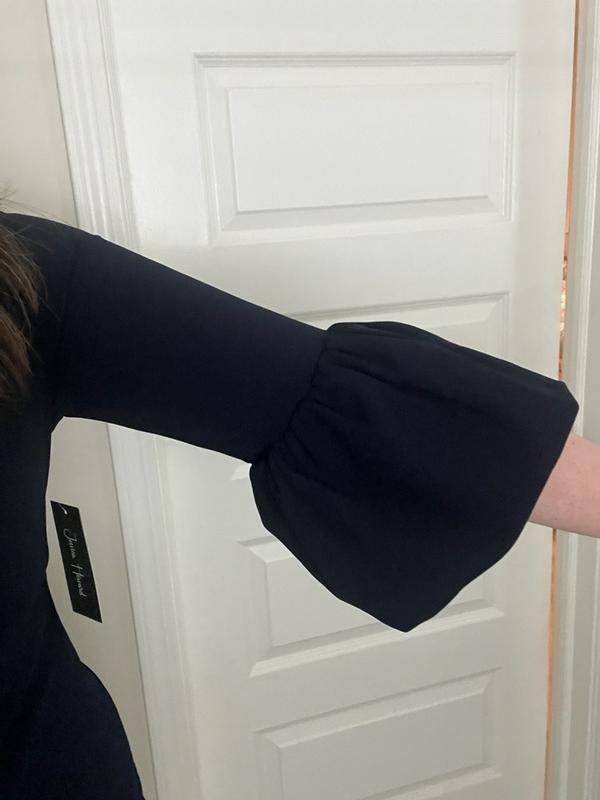 This dress is really well made, and has a liner in order to make it a little more forgiving and easier to put on. The bell sleeves are unique and fun, while still sophisticated. Unfortunately, I had never ordered from this brand before and went with my normal pants size, but the dress was too small, and I would have needed to size up one or two sizes. Also worth noting was that the dress was a lot more low cut than I expected it to be. It is more form-fitting than the stock photo made me believe, but it would still be a good choice in the right size.