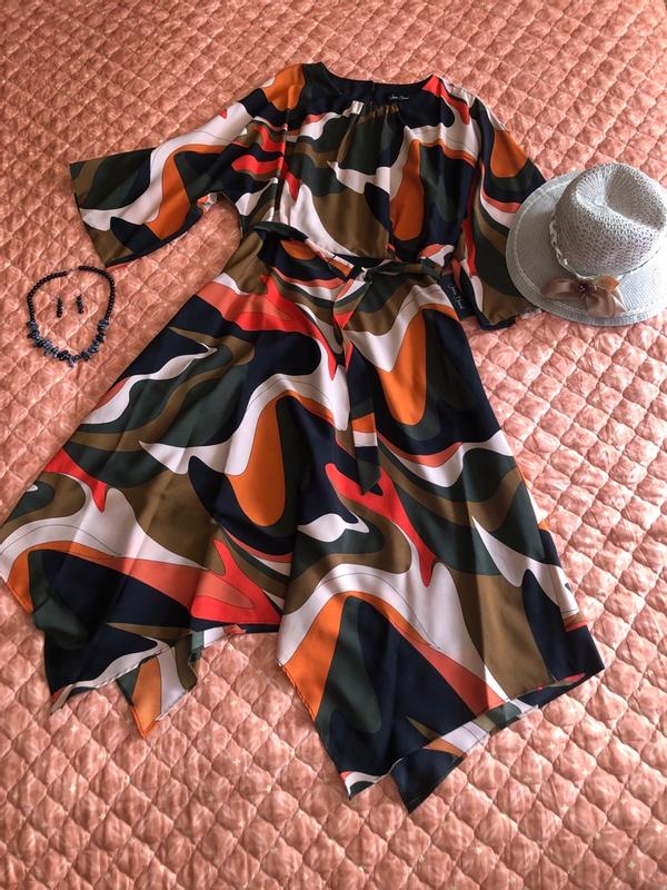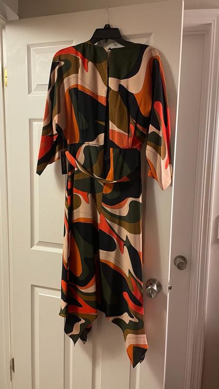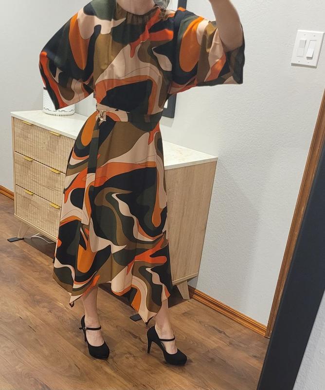 This Jessica Howard Dolman Sleeve Jewel Neck Belted Handkerchief Hem Dress was gifted to me in exchange for my review. This dress fits perfect. The material is soft yet durable. The colors are striking and the design is unique. I love the look of the belt around the waist. It’s very flowing and makes me feel beautiful.