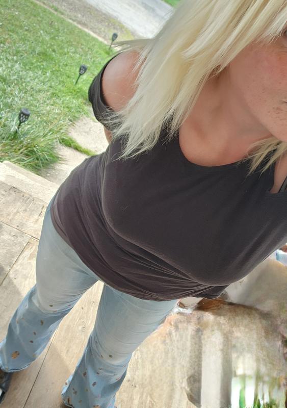 Thank you for allowing me to sample this flare jeans with cute charmed stitching. They fot perfect! Not to low on the waist and the legs are everything. The fitted top and the flare bottoms are so stylish!
