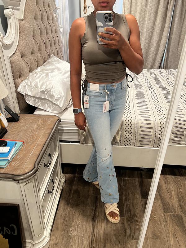 I absolutely love the Jessica Simpson Charmed Fitted Flare Jeans. At first glance by just looking at them I was skeptical about how they would look on me seeing as how high waisted they are. I was definitely surprised once I tried them on! These jeans really accentuate my waist and curves. I really like the cute embroidered flowers on the bottom of the jeans. Highly recommend.