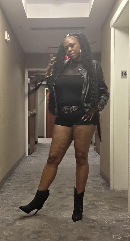These boots are super cute. That heel is a perfect height not too high. The rhinestone set it off. I’m into camo, so to get camo in rhinestone is a nice touch. The only problem is the shoes are kinda narrow, which makes them run a bit small I normally wear 8 but got an 8-1/2 but they still felt kind of tight around the middle so I’m gonna exchange them for a size 9, you might wanna go up half a size in order to wear them comfortably with a pair of socks.
