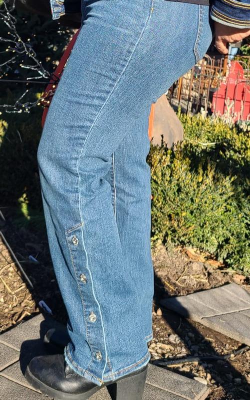 I am not sure about this style of jeans for myself. It's been many many years since I have worn boot cut jeans. I think they are great on younger adults I'm also not sure about the buttons on the bottom side of the jeans