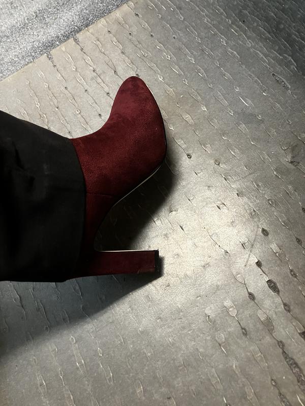 These boots actually are are very nice in person. The heel is a good size & comfortable to walk in. Today is my first day wearing them & I'm loving them already. They make my feet look small & sexy. Size 10 here & you can wear these to work, out on a date or to a party!