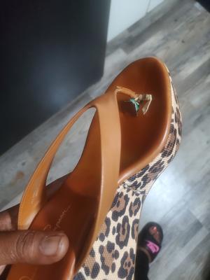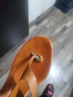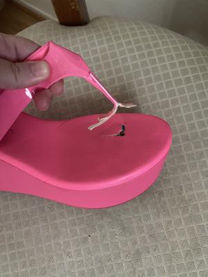 I bought these shoes a while back. never wore them, until today. I’ve tried them on and they fit perfect, looks cute, but deadly. two steps and my left foot went to the left. the toe part of the thong came up. It is held down with tape. Almost broke my ankle