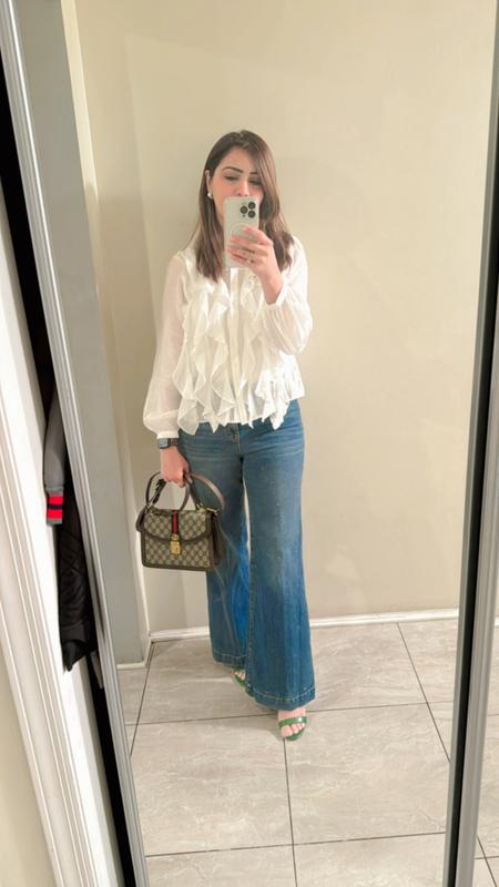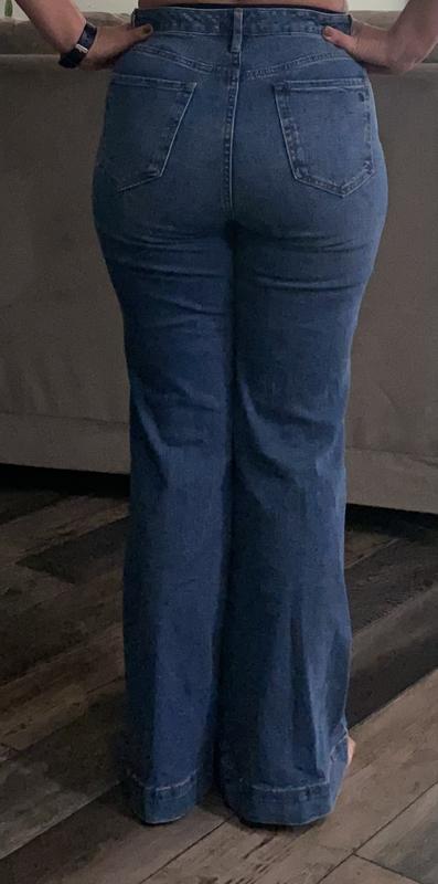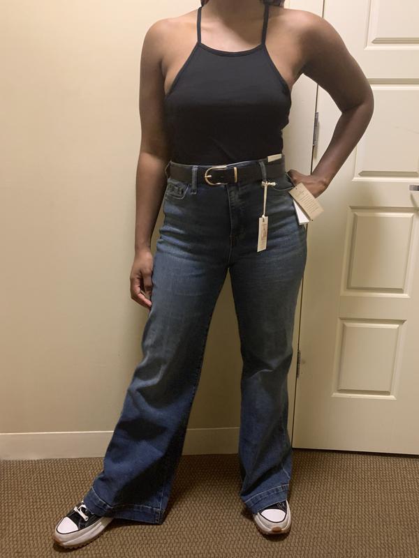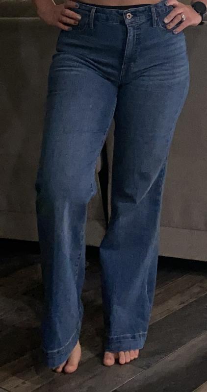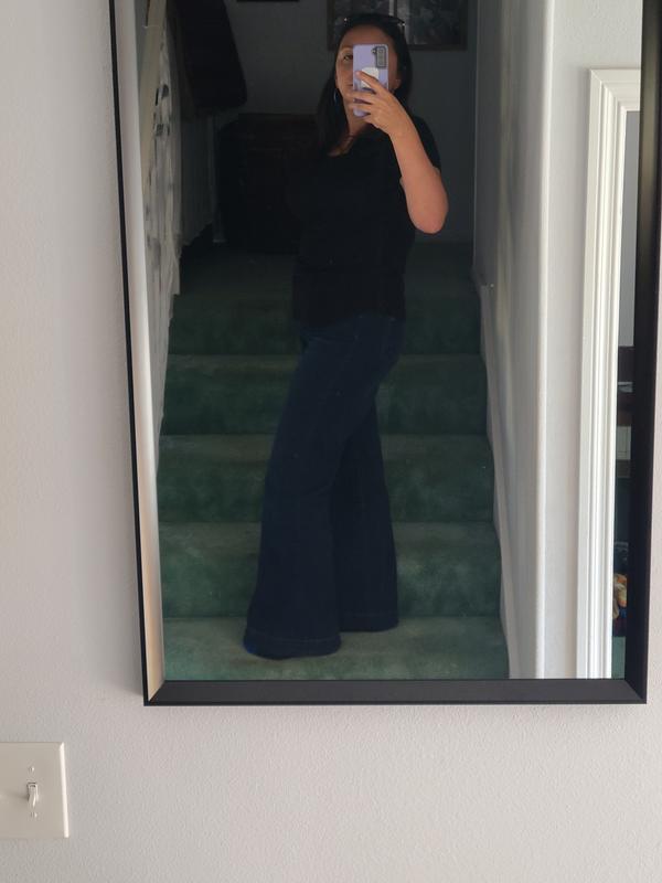 Would have been 5 Stars if the dark rinse (Ditto) had not faded so much after the first wash. Fits well. Style is long, plan to wear with heels if you are 5'-3" and under!