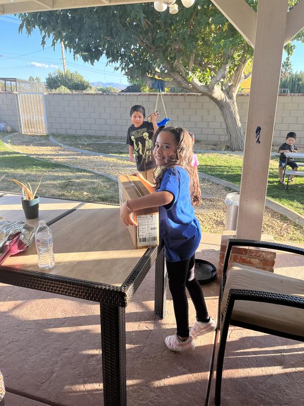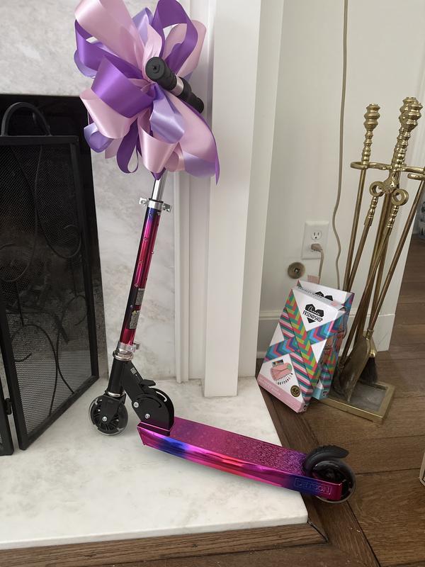 We just bought this for our 5 year old daughter and she’s obsessed!! It’s super cute and the lights are such a cool feature! It’s also so convenient that it folds up. Great product!
