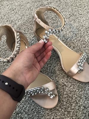 I wore the shoes only one time and they are already damaged. The jewels are coming off.