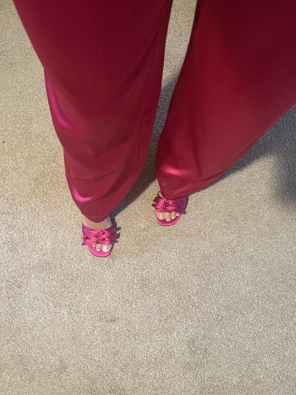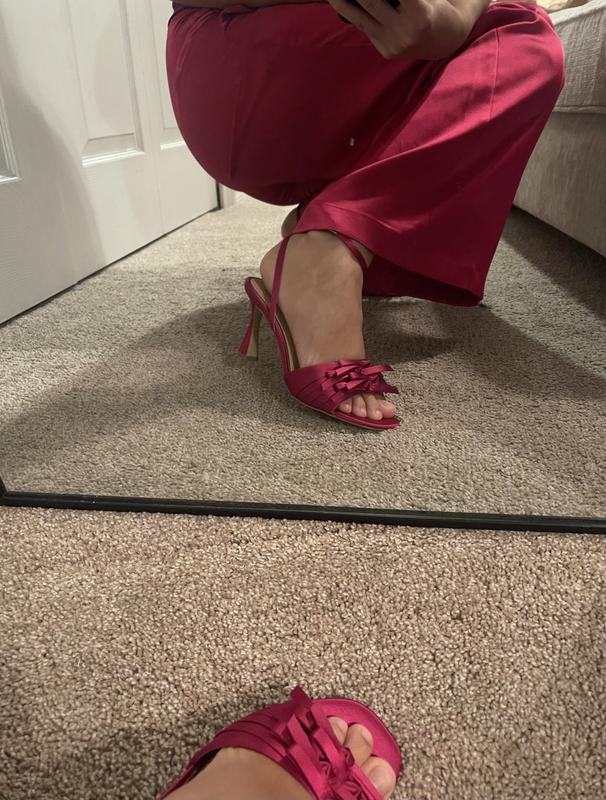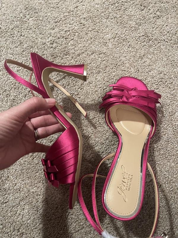I bought these sandals specifically for my satin suit. The color matched perfectly. The shoe size corresponds to the size chart. The shoes are comfortable and beautiful. The heel is very stable. But I didn't like how the shoes looked with my satin pants. Separate from my suit, the sandals look amazing. But I bought these sandals specifically for my suit. I returned the sandals. Maybe I should have bought satin heels. I recommend these sandals. They are really good quality and look presentable, expensive, beautiful, and comfortable.