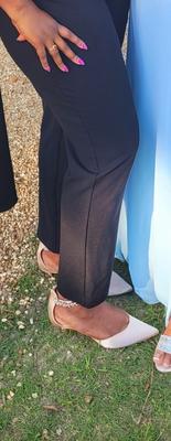 They’re really pretty. Low kitten heels and very dressy. Just what I needed!