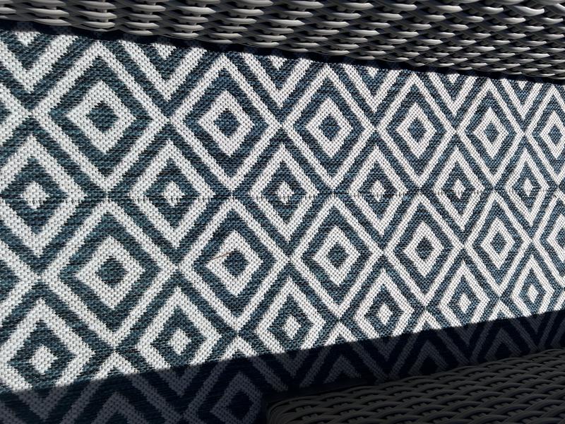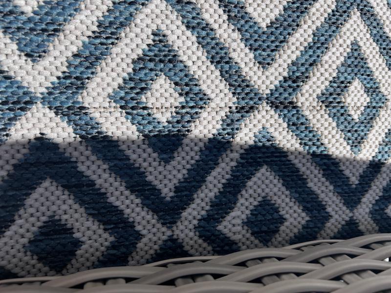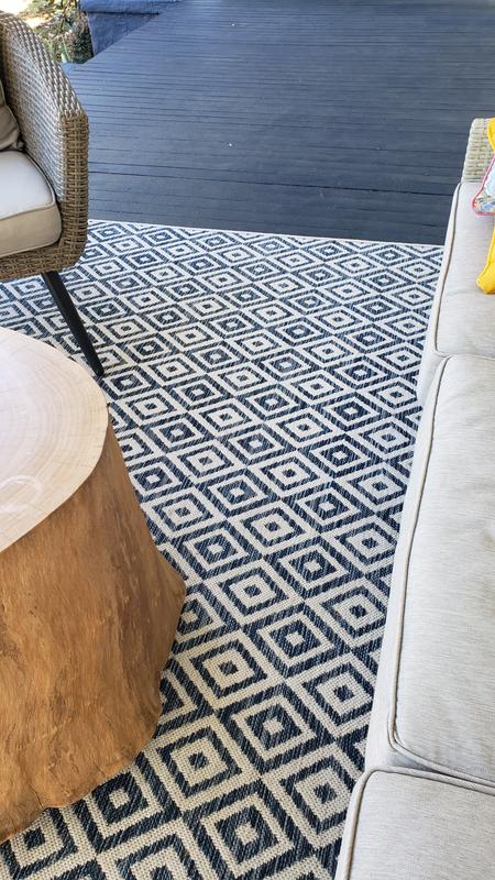 Great rug for my balcony. It's softer than what I expected an outdoor rug to be, which is nice for my tootsies because I like to go barefoot. Rug is very well made and the material is quite luxurious.