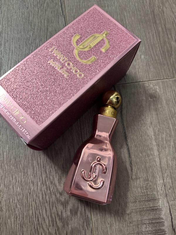 This perfume is wonderful! It’s floral and sweet. It smells like raspberry, rose and some vanilla. The bottle is classic for the I want choo collection. The atomizer works beautifully and it stays on ALLL DAY