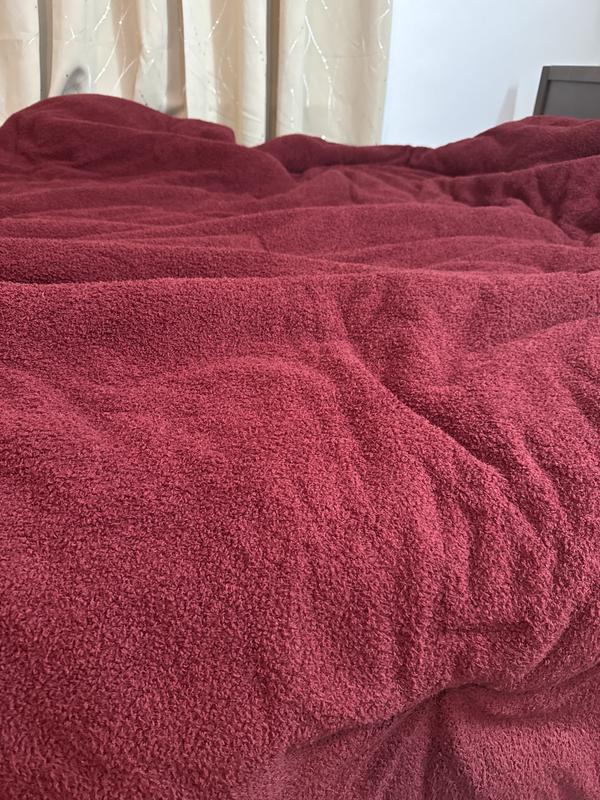 I was worried that the material would be too towel like, but I’m glad I ordered this comforter. The material is actually very soft and silky feeling. I live in Michigan and I am always cold in general. The blanket keeps me very warm and holds heat so I don’t have to turn my heater up at night, which is amazing and will save me a lot of money this winter. Added bonus: my cat absolutely loves it. If she’s acting hyper, I set her on the blanket and she starts making biscuits and lays down. It’s surprising and amusing.