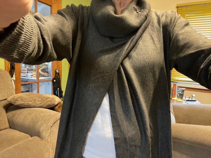 This sweater is a quality product as far as material, cut, etc. . . . however, once it was washed, it did not drape nor fit quite correctly. (It was not dried; I hang my sweaters by draping them over a clothesline.)