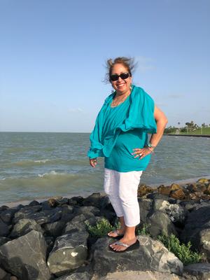 Love this top. Fits and drapes beautifully. Neckline is perfect. No worries about bending over and flashing. The gauze material is perfect for warmer climates. A definite item to pack for those vacations.