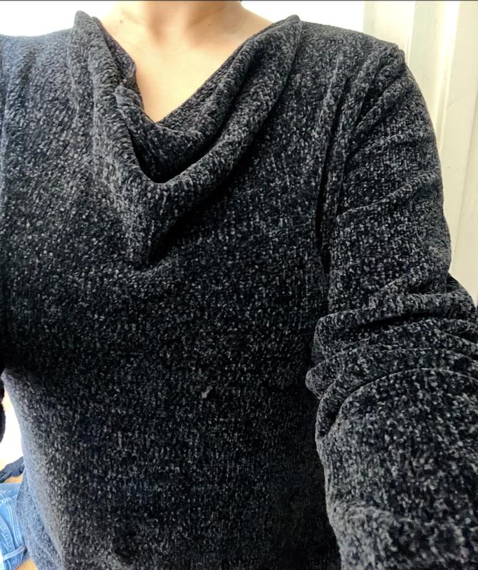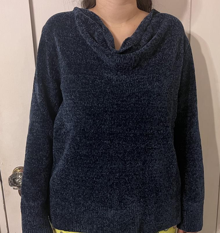 I absolutely love this sweater. The chenille fabric is soft, plush, and beautifully made, offering just the right amount of warmth without feeling heavy. The cowl neck adds a refined touch while keeping it cozy and comfortable. The blue color is rich and flattering. I ordered the petite large, and the fit is perfect. The proportions are just right in both the sleeves and the body, and the sweater drapes beautifully. It has quickly become one of my favorite pieces for cool days, effortlessly combining comfort and style. I receive compliments every time I wear it. Highly recommend.
