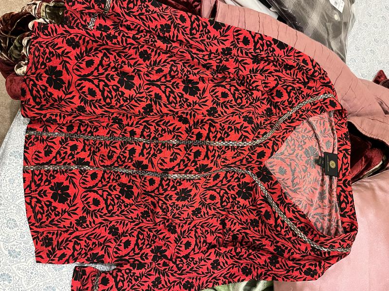 This top isn’t quite what I imagined. It has a v neck and sequences down the side which adds to the elegance of the top. It can go with dress pants or even jeans for a casual wear. I love the red color, very bold!