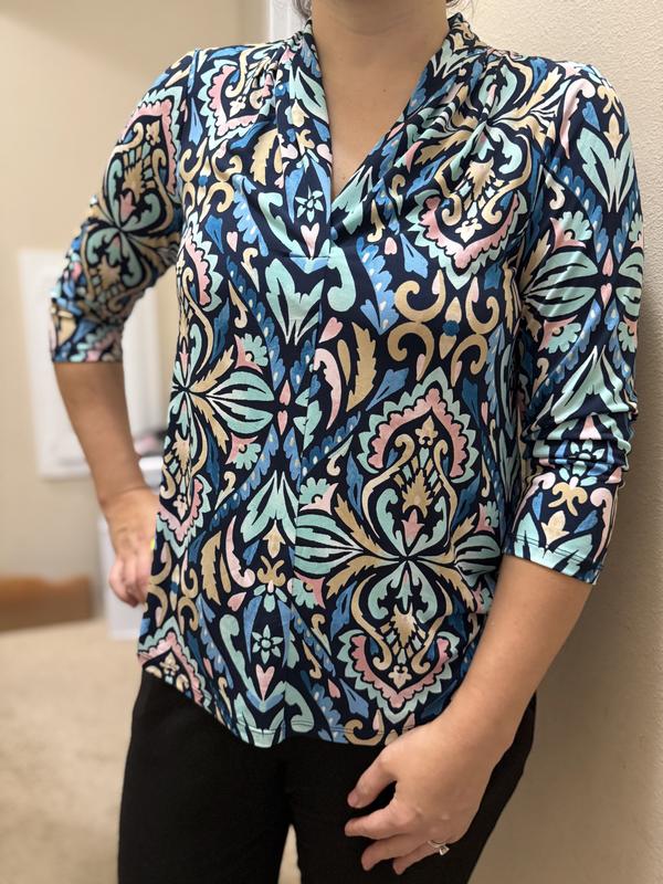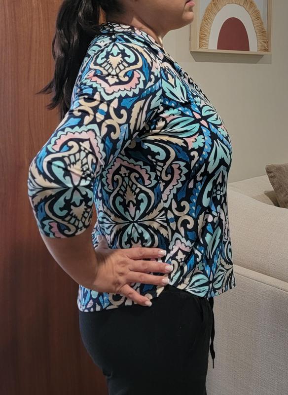 Petite Daniella Damask Printed 3/4-Sleeve Top, Macy's Exclusive