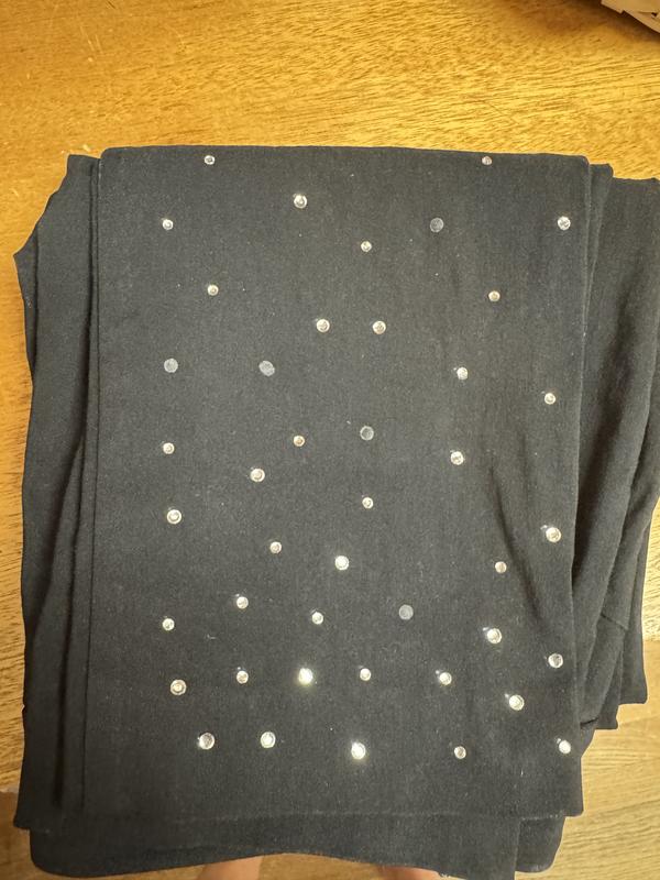 I really like these pants, they fit true to size and the length is perfect for me, I am 4”10. These will go great with a Holiday sweater for a Christmas party and some sparkley boots! The only thing that I don’t like about them is there are no pockets, I just need pockets in whatever I am wearing. Otherwise these are really nice, love the sparkles at the bottom of the legs!!