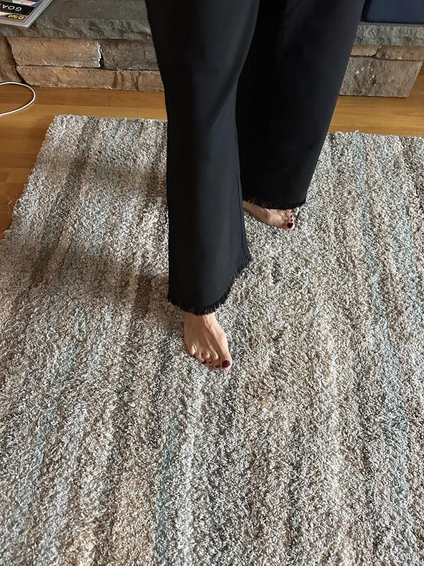 These pants are a 10/10. They are so versatile. I have thrown them on with a sweatshirt and tennis shoes to wear to a sports event and have pairef them with a blouse and sandals for a dinner date. I love the stretch and the fray look at the end. I find my self grabbing for them on a regular basis. You can’t go wrong with these pants!!