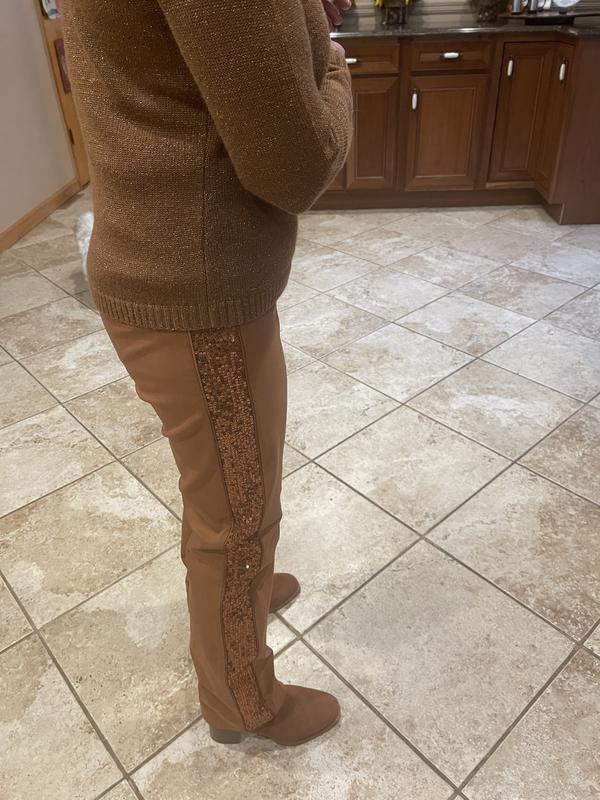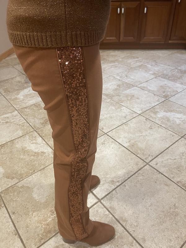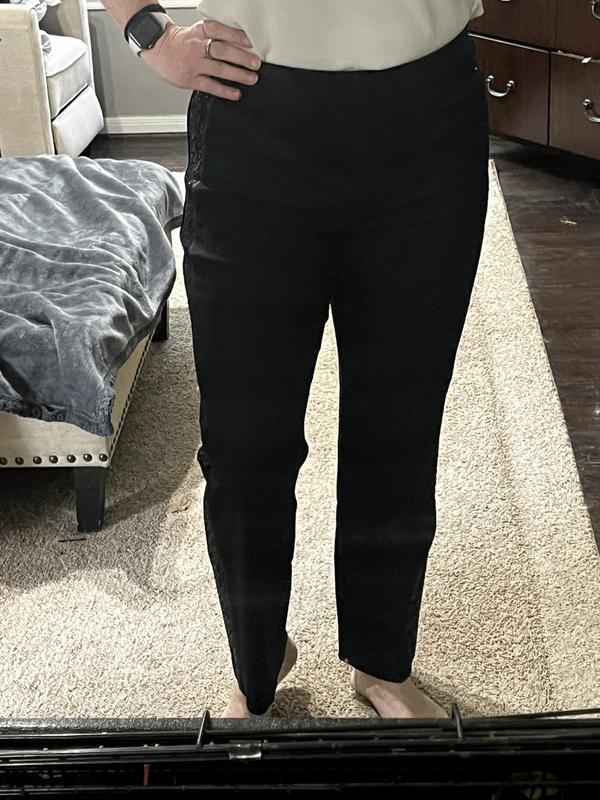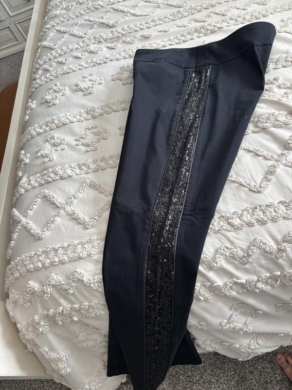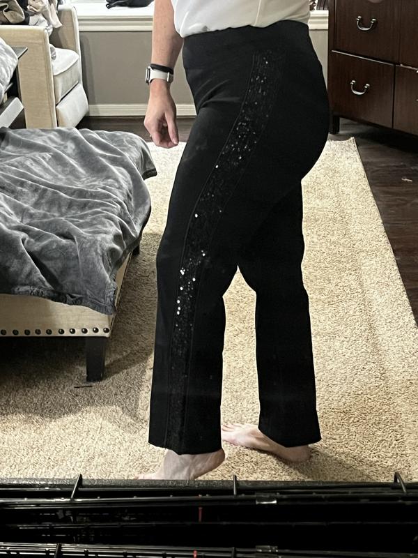 If you are the person that likes bold bling then these are the pants for you. I like bling but these pants were not something I would consider. To me the sequins were too much. I did however find several tops of mine that could pull the pants into an acceptable outfit. The material is a good quality with plenty of stretch and form fitting. As a reference I am 4’10” and weigh 110 I am wearing PS.