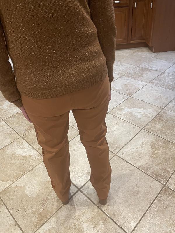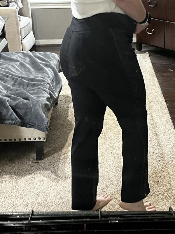I fell In love with these pants. They are true to size but a little stretchy. I love that you can dress them up for work or dress them down with a sweatshirt and tennis shoes. These pants are a must buy.
