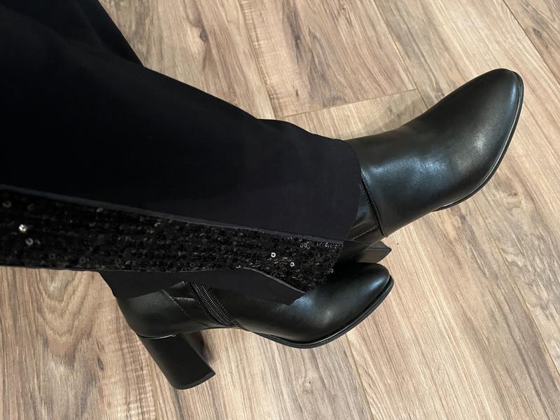 Got these sequin side-stripe pants in black. They fit true to size and have a comfy pull-on style, which can be dressed up or down. Perfect alternative to jeans during the festive season. I was pleasantly surprised by the softness of the sequin stripe, which also gives the perfect amount of subtle sparkle. Would pair beautifully with a blazer for office-wear as well. Tried them on with pointy toe boots and loved the look!