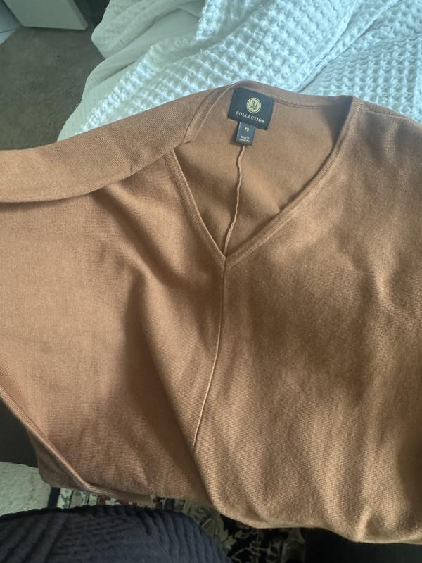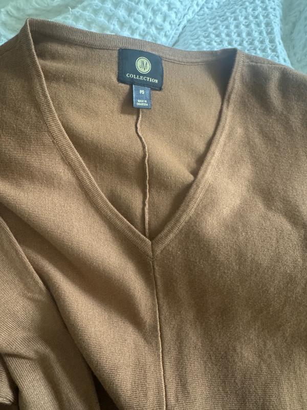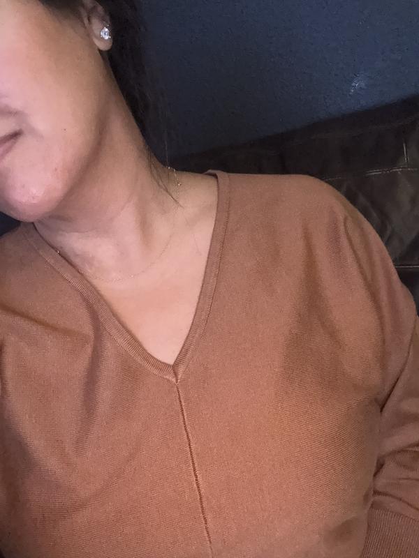 This is a really cute V-neck sweater. It is super soft and perfect color for the fall. You can wear it with jeans or dress it up with a faux, leather black skirt and tall boots. I got a burnt orange color and I really like it