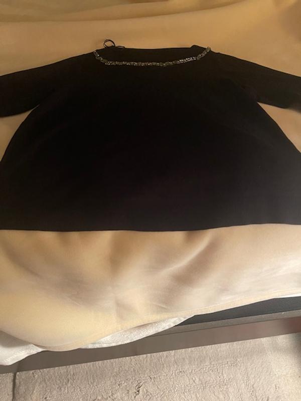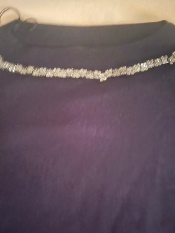Really pretty classic understated look, a little bling but very simple design, soft material, normally i wear 2X , got 3X so it will be loose and not clingy, great for holiday party or out to dinner and maybe even to work if your office gets dressed up