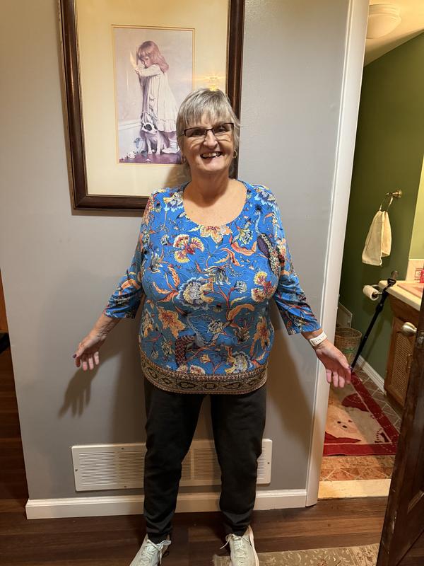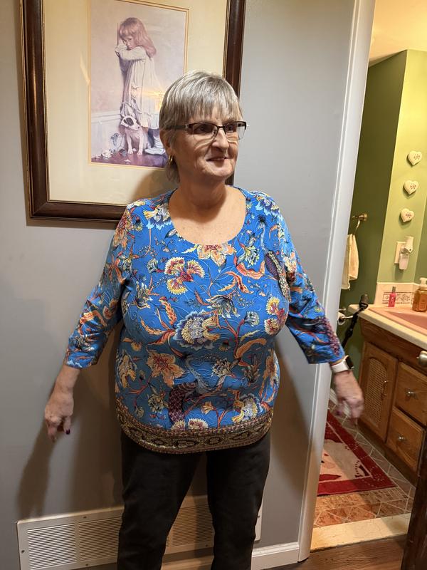Nice Top. I got this for my daughter. She liked the colors and the fit. She wears it with jeans in a casual way and as a church top. She said she has gotten several compliments about the colors of the top and how nice it looked on her.