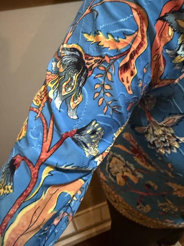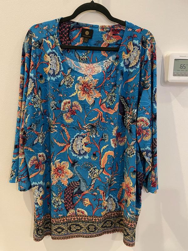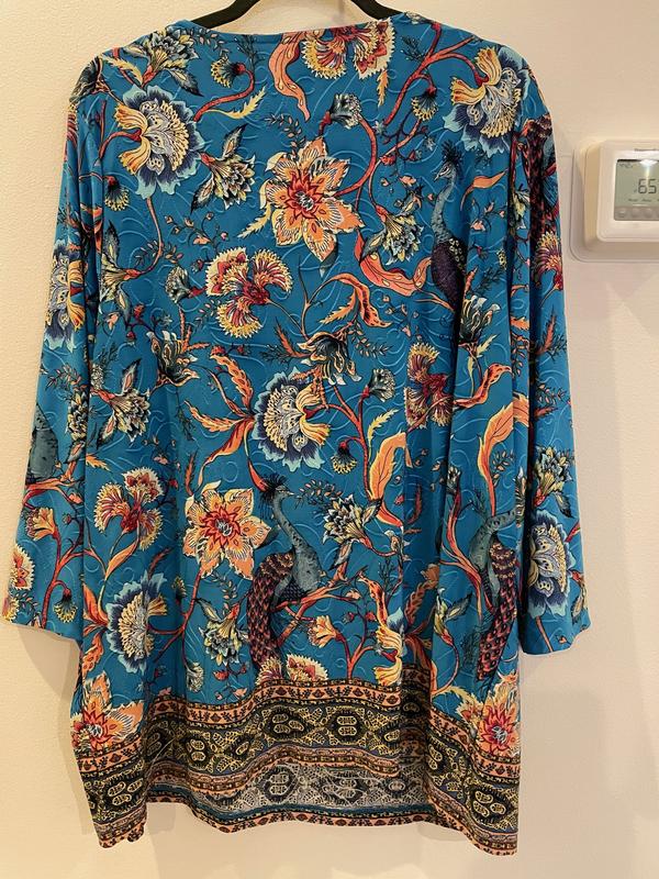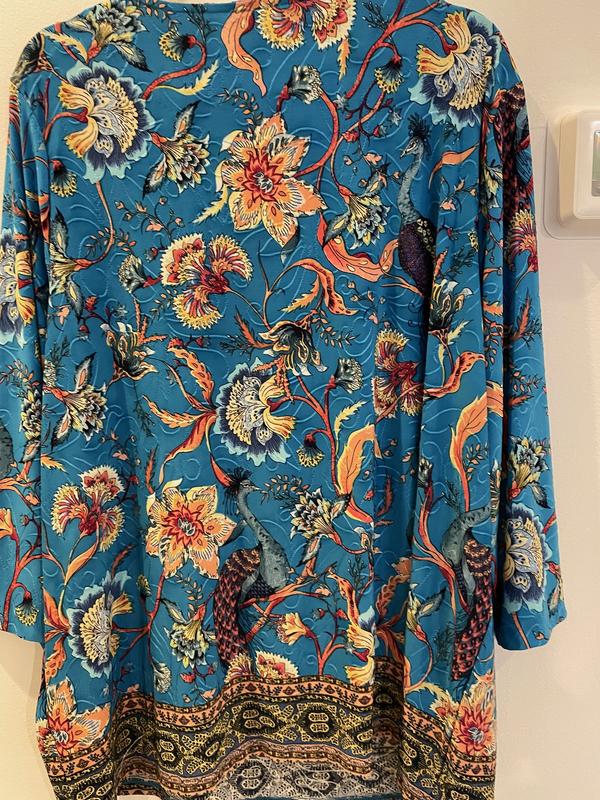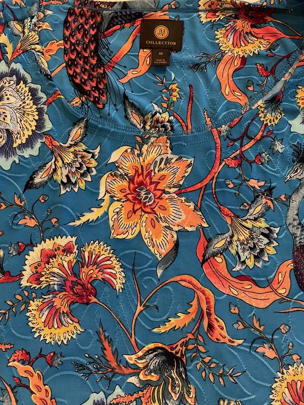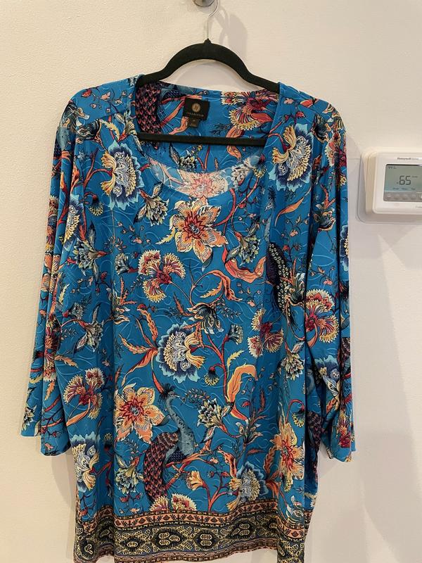 Initially got the top to wear at work. Top is very comfy. The colors are so pretty and the designs of the birds is beautiful. I got alot of compliments when i wore it to work. Then i tried it with a pair of blue jeans and it was a hit as well. So you can wear it both professionally and casual.