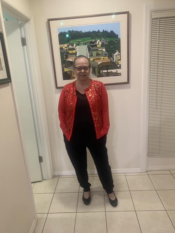 This cardigan is casual and can turn any basic black outfit into a conversation piece. The material is warm and the design on the front is beautiful. It can be worn as a button down sweater or and open cardigan.