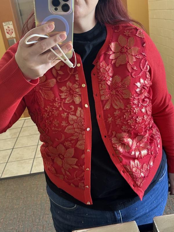 Plus Size Metallic Jacquard Button-Front Cardigan, Macy's Exclusive