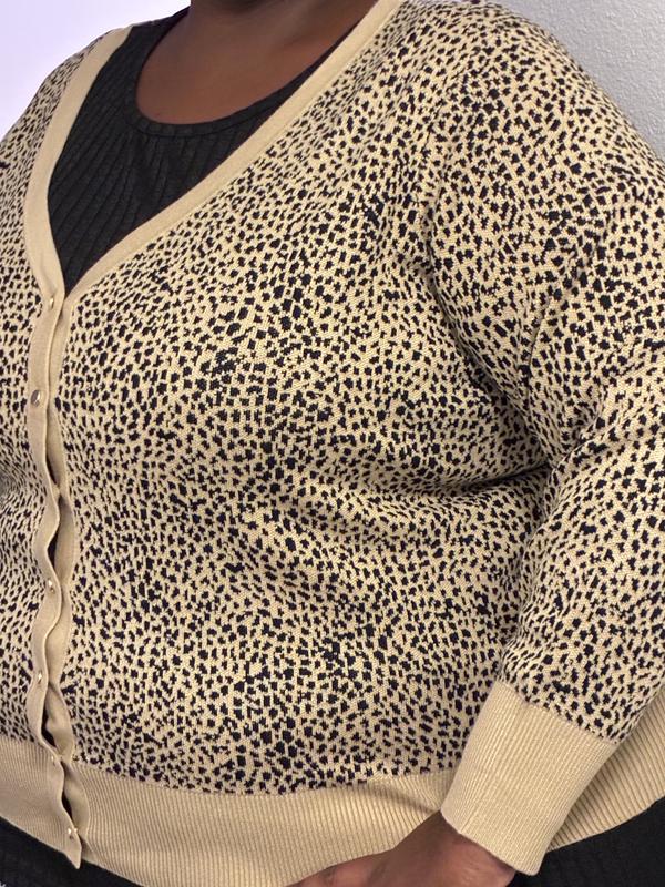 It’s super soft and so very comfortable to wear. I love that it can be used in early autumn since it’s not extremely heavy or thick. The coloring of the speckle pattern almost give it a cheetah look. It’s very luxurious