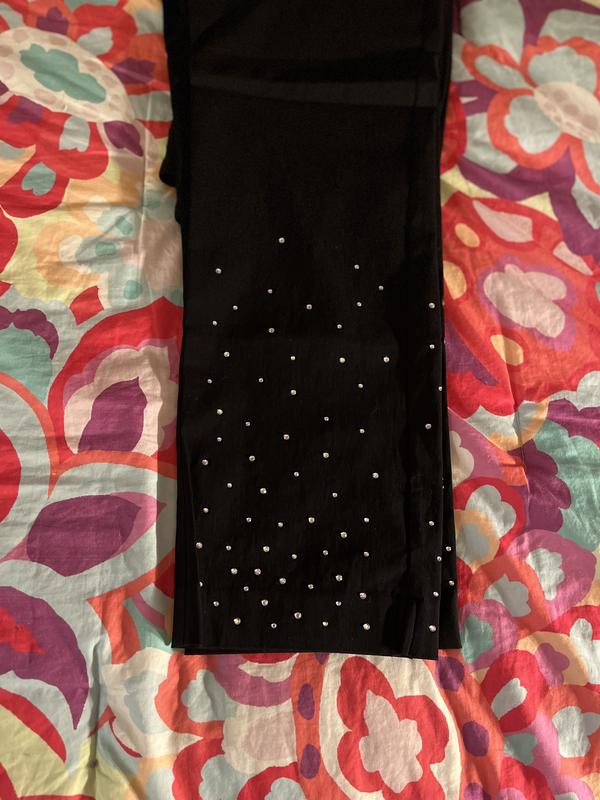 I love JM Collection clothing. And these pants are no exception. They are perfect for the holidays. Super comfortable, pull on style. And the rhinestones are SO pretty! I might wear these for New Year’s Eve. My ONLY problem is that they are too long. I’m only 5’2’ so I’ll have to get them hemmed. I would DEFINITELY recommend these pants. They are so cute!