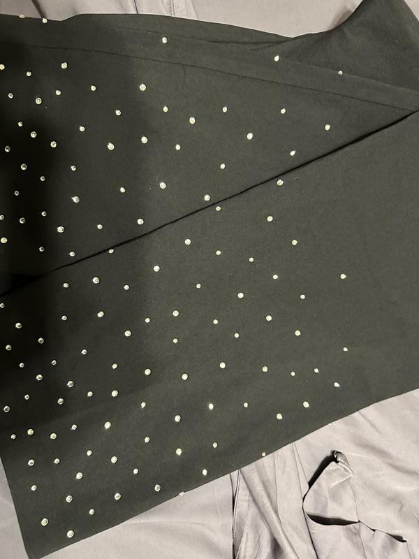 I had high hopes for these pants. I loved how they looked. The material is nice and felt very comfortable It has the perfect amount of stretch. I washed the pants inside out on a delicate cycle and hung them to dry. Several of the rhinestones fell off in the wash and then some fell off while hanging to dry. The fit was really good. It did not bunch or cut at the waist.