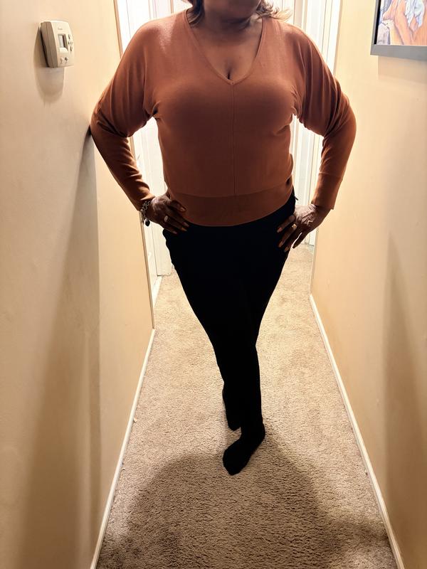 I ordered the Solid Dolman Sleeve V-Neck Pullover in Burnt Amber, and although it arrived in a size large instead of the XL I expected — and trust me, I am not a large — I instantly fell in love with the feel of this sweater. The material is incredibly soft, and as a big fan of V-necks, this style is right up my alley. I’ve already purchased it in the proper XL, and I even ordered it in black because I know it’s going to fit perfectly once it arrives. The versatility is a major plus — you can easily dress it up or keep it casual for a relaxed night out. Great piece, great quality, and definitely worth the buy.